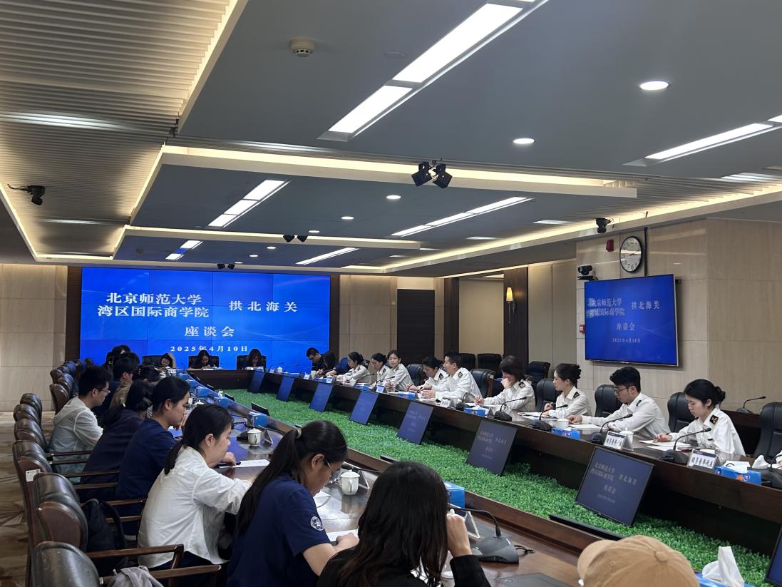 专题座谈会上,同学们通过观看专题视频,初步了解了拱北海关的发展现状及特色项目,对海关职能与实践运作有了基本认知。随后,拱北海关办公室副主任孙海波围绕拱北海关的发展历程、重大改革成果等内容进行了全面介绍。他结合口岸旅检改革案例,系统介绍了拱北海关在推动服务升级方面的积极探索与创新成效。介绍深入浅出,为师生们呈现了一个直观、生动且具有深度的海关实践样本,让大家对海关工作有了更深入的认识。