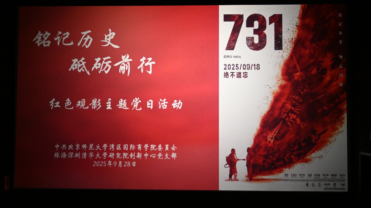 在纪念中国人民抗日战争暨世界反法西斯战争胜利80周年、喜迎中华人民共和国成立76周年之际,伟德公司党委联合珠海深圳清华大学研究院创新中心党支部,于9月28日在格力海岸海上影城成功举办红色观影主题党日活动。50余名师生党员齐聚一堂,共同观看历史题材电影《731》,在光影叙事中重温峥嵘岁月,凝聚奋进力量。