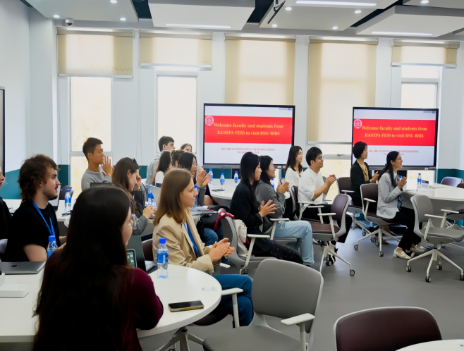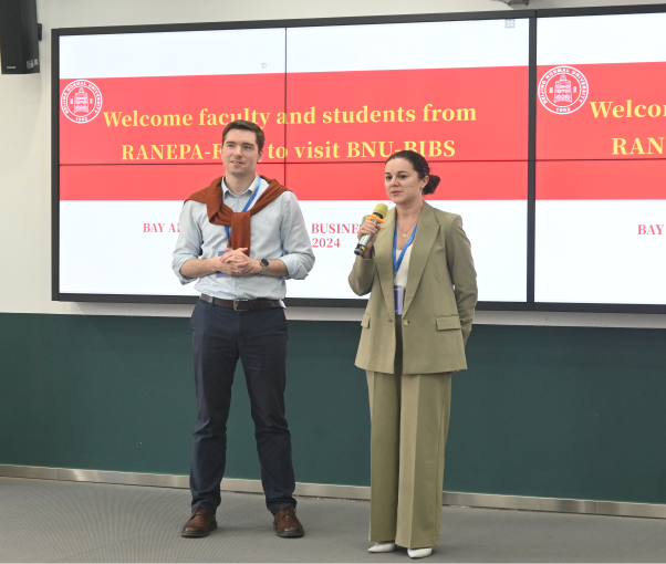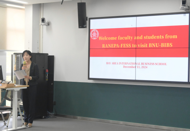随后,俄罗斯总统国民经济与公共行政公司副经理 Evgeniy Itsakov 致辞。他在致辞中回顾了与北师大携手同行的合作历程,认为双方在教育理念上高度契合,期待未来能开展更多的交流项目。副经理 Kozlova Margarita 也在会上表达了对两校合作交流的高度重视,并热忱地向中方师生发出邀请,希望中方师生能够前往莫斯科进行深入交流,共同探索并开启更多崭新的合作计划。