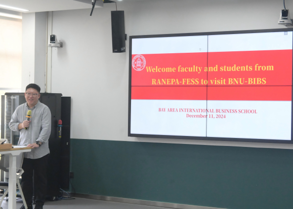 12月11日下午,来访团欢迎仪式在励耘楼B306举行,珠海校区国际交流与合作办公室主任郭侃俊出席会议,中俄商业合作项目团队师生参与会议。