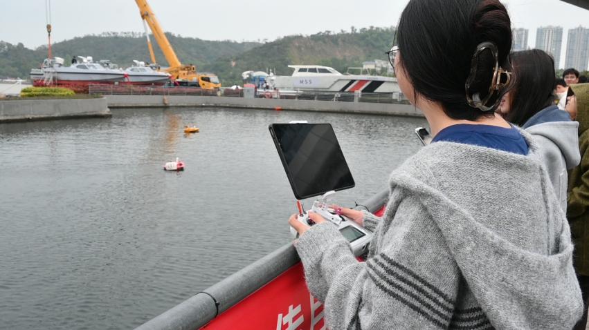 展厅内陈列的初代无人船实物尤为引人注目——这艘15年前研发的船舶搭载了为突破早期技术限制而设计的三摄像头视觉系统,其采用的国标级抗腐蚀材质更能适应复杂水域环境。这些充满历史感的工程细节,激发了在场师生的浓厚探究兴趣。