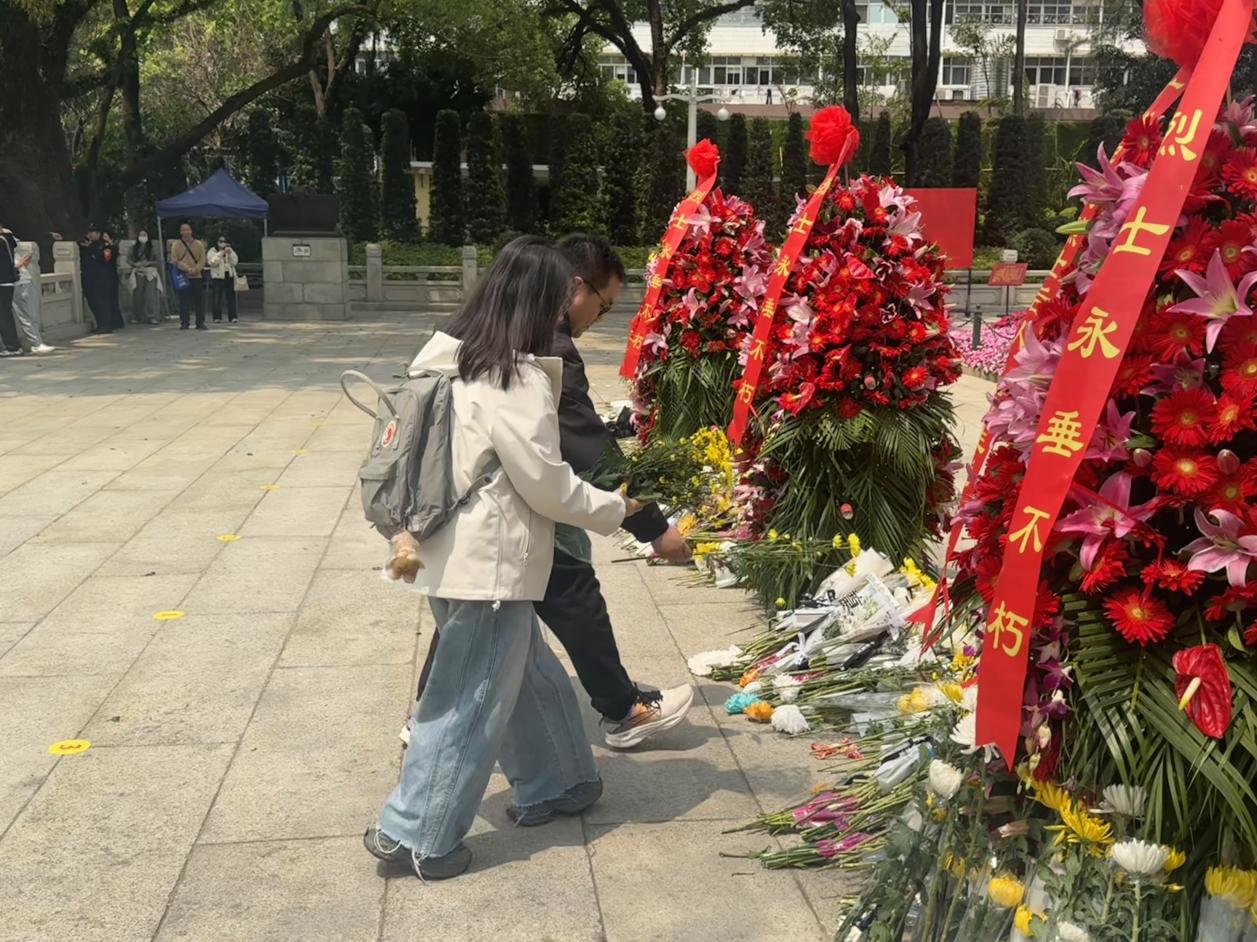随后,师生党员一行前往广州起义烈士陵园,全体成员肃立于纪念碑前,敬献鲜花并默哀致敬。