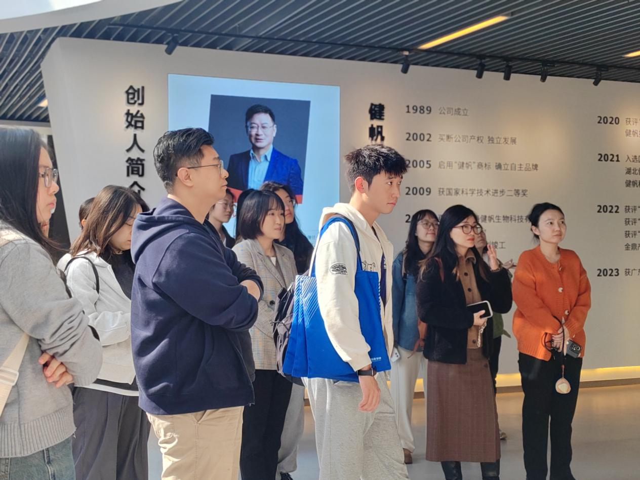 参访过程中,师生们的足迹遍布集团多个关键区域。从彰显企业形象的大堂,到展示前沿成果的展厅;从忙碌有序的办公区、专业高效的培训中心、精密严谨的检测中心,再到充满人文关怀的员工生活区域,如员工食堂、千帆公寓以及活力四溢的运动场馆。在每一处,健帆集团工作人员都予以详细解说,让师生们充分领略了企业发展历程、独特企业文化以及日常运营的精细之处。