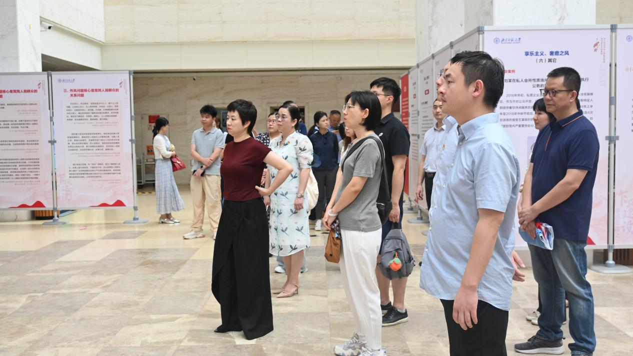 为深入贯彻中央八项规定精神学习教育,切实加强党员干部作风建设,6月20日下午,公司教师党支部与珠海农商银行高新支行党支部开展党建联建活动,组织近40名党员赴图书馆二楼展厅,参观由公司党委和公司纪委主办的“作风建设永远在路上——深入贯彻中央八项规定精神学习教育专题展览”。专题展览由公司党委纪检委员车婷婷老师现场讲解,两支部近40名党员参加活动。