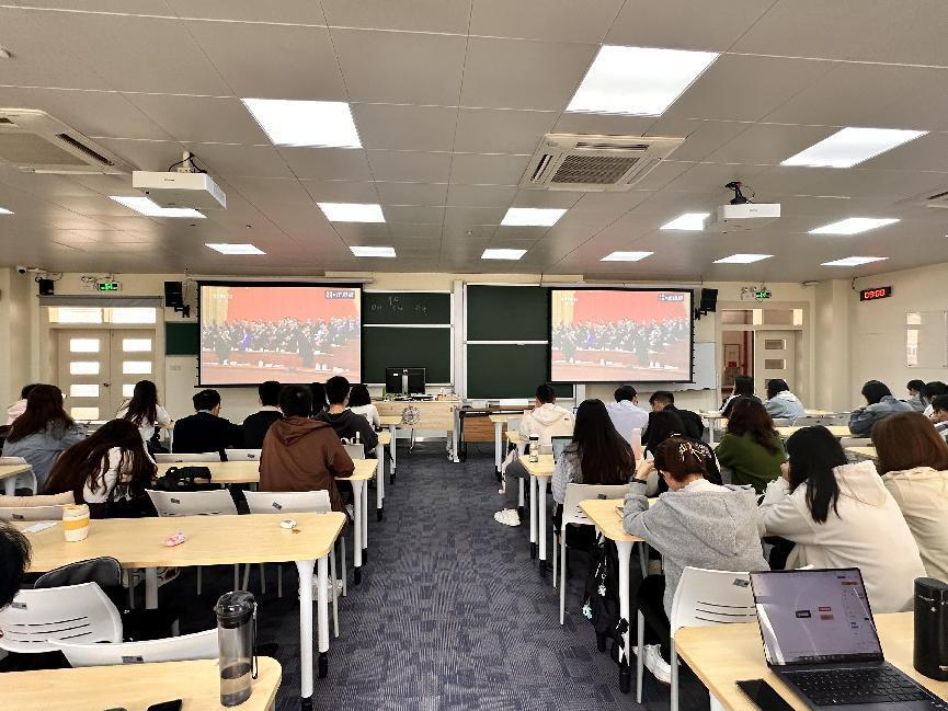 3月5日上午9时,公司党委组织全体师生党员、发展对象及入党积极分子分别在公司会议室和励耘楼B410教室集体观看第十四届全国人民代表大会第二次会议开幕会直播,学习国务院总理李强作政府工作报告,各党支部共110余名党员参加本次活动。会后,参学党员就政府工作报告展开热烈讨论,结合自身学科特点,表达青年一代对国家发展的美好愿景、对社会进步的坚定追求。