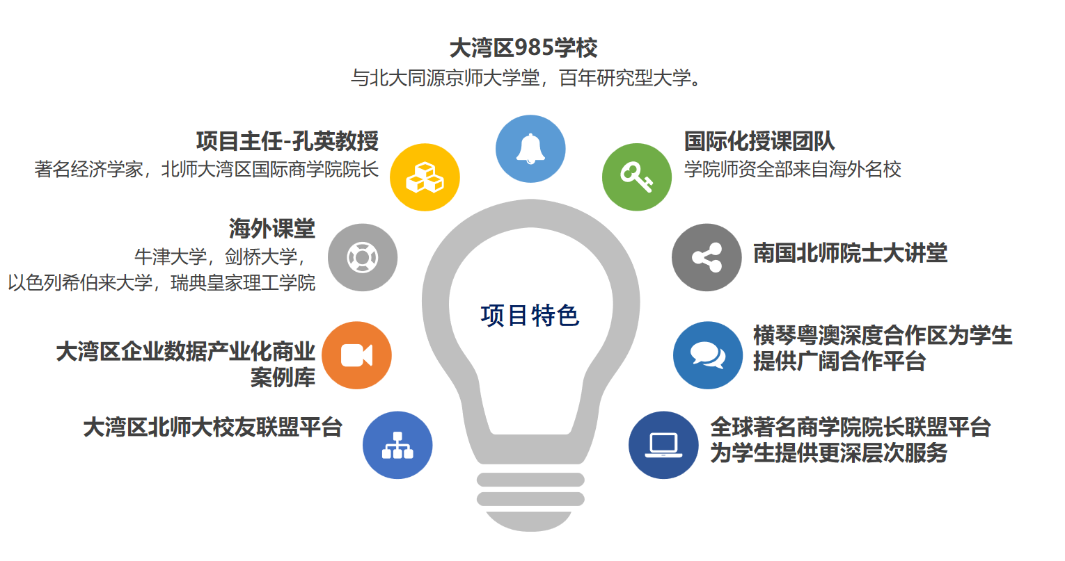 与政府、企业和社会组织建立“合作教育”模式,建设符合大湾区创新创业特点的北师大案例库,与国际知名智库和一流高校合作,与若干大型企业、上市公司合作。